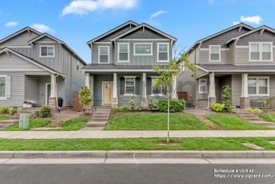 Welcome to 31474 Northwest Turel Drive, a beautifully designed home in the charming community of North Plains, OR. This stunning property boasts a modern exterior with a welcoming front porch and meticulously landscaped front yard. The spacious two-car garage provides ample parking and storage space. Inside, the open-concept layout features a light-filled living area with sleek hardwood floors and a cozy fireplace, perfect for relaxing or entertaining guests. The gourmet kitchen is a chef's dream, equipped with stainless steel appliances, granite countertops, and a large island with seating.