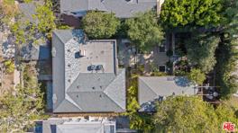Welcome to 643 Westholme Avenue, a charming Colonial in the Little Holmby area of Los Angeles, designed by acclaimed architect Frederic Wallace and meticulously reimagined by the current owner. This home spans an impressive 4,800 square feet, with an 800 sq ft art studio/office, crafted by noted architect Frederick Fisher, all situated on an elevated 8,555 square foot lot offering classic California indoor/outdoor living! Step inside to discover a seamless blend of tradition and modern elegance. Warm toned hardwood floors flow throughout the home, featuring a light filled living room, a classic fireplace, and perfect ambiance for gatherings. A sunny dining room flows to the cooks kitchen offering built-ins, premium appliances including Sub-Zero, Miele, and a Wolf range and cozy breakfast area with upholstered banquette perfect for family meals. A cozy family room, complete with a fireplace, custom built-ins opens and wall of glass opening to the flagstone patio and meticulously designed terraced garden, designed by noted landscape architect Laurie Loyce. Enjoy outdoor entertaining at its finest, offering a fire pit, fountain, kitchen, pergola and many citrus and fruit trees. A magical outdoor dining area beautifully accented with outdoor lighting for many al fresco evenings. This home offers 5-bedrooms, 5.5-bath, all en suite, providing privacy and convenience. The serene primary suite boasts vaulted ceilings, built-ins, a luxurious bathroom with a separate shower and tub, and Toto toilet. A private balcony overlooks the lush gardens. Perfectly sited amongst this idyllic garden setting is a separate 800 sq ft studio designed by Frederic Fisher with soaring vaulted ceilings, skylights, and a mini kitchen and bathroom offering a variety of uses - art studio, home office, guest house, screening space, etc...Additional features include a laundry room, water filtration system, 2-zone HVAC, a 2-car garage, but no direct access to the house.- perfect for a family, or anyone wanting true haven offering privacy, elegance, and sophistication. Adjacent to UCLA and Beverly Hills and central to all LA has to offer!