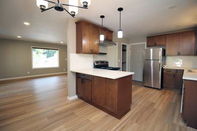 Completely remodeled split level home. Daylight basement with door to a covered carport/patio. The basement living area has a full bath.