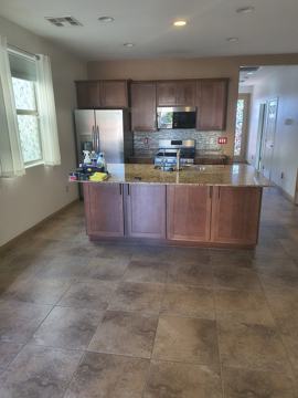 Travertine tile throughout the WHOLE home makes cleanup a breeze