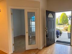 This upgraded ranch house has a vaulted ceiling huge great room and spacious kitchen/eating area. A den right by hard wood floored foyer behind French glass doors. Master bedroom on the right side of the house has a large garden tub, separate shower room and two sinks in master bathroom. There are two guest bedrooms on the left side of the house and the hallway bath is in-between them. Plenty of storage/exercise space in basement. Concrete patio in the backyard. Washer and dryer included. Sprinkler opening/closing is included as well. Long term preferred.