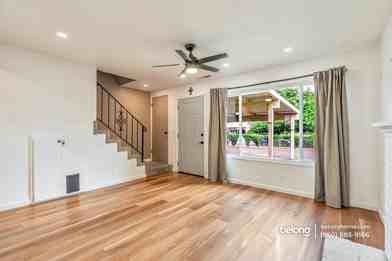 Sunlight streams into this 2-bedroom, 1.5-bath home in Concord, where a smart remodel adds style and functionality throughout. The living area opens with wide windows, wood-toned floors, and a decorative fireplace that brings character to the room. Extra storage is tucked under the stairs, ensuring you can keep daily life organized without sacrificing space.