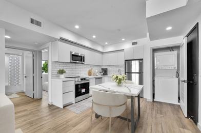 A washer and dryer are included in-unit for your convenience, and every detail has been thoughtfully crafted to make you feel right at home.