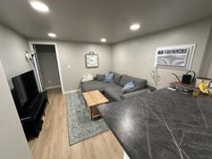 This 3 bedroom 1 bath is our unique basement unit. One bedroom large enough to fit a king bed located right next to the bathroom with two vanities, washer/dryer, and an oversized tub! The bedroom adjacent to the living room is designed to fit a queen. While the other bedroom adjacent to the kitchen is on the smaller side making it a perfect place for someone looking for a kids bedroom, office, or extra storage space.