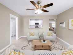 Welcome home to this "cute as a button" 2 bedroom, 2 bath residence in a family-friendly neighborhood. Recently renovated, your home features a fully updated kitchen and new bathrooms, with tile floors throughout for easy maintenance. To stay cool, there are wall and/or window ACs and ceiling fans in both bedrooms and the living room. A covered carport shields your vehicle from the Florida heat, and a newly screened airy lanai overlooks your partially fenced quarter-acre backyard retreat with a storage shed. One year lease. Tenant provides electricity and water. Renter takes care of lawn maintenance. This is a non-smoking property (home & yard). Friendly, well-behaved pets are welcome (pet fee applies). If you sign by September 30th, we will take $400 off your first month's rent! Call Craig at 772 257-1854 for an application and a tour.