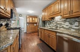 This charming 3?4 bedroom expanded Cape Cod offers a perfect blend of comfort and convenience. The recently renovated, oversized eat-in kitchen features stainless steel appliances and opens directly to the family room with beamed ceiling detail, creating the ideal space for both everyday living and entertaining. The main level includes a formal living room with a large bay window, a dining room with recessed lighting, one bedroom, and a full bath with tub. The family room provides seamless access to a spacious, flat backyard?perfect for outdoor enjoyment. Hardwood floors run throughout the first and second levels. Upstairs, you?ll find two generously sized bedrooms with ample closet space and an updated full bath. The finished lower level offers exceptional versatility with a large office or rec room featuring recessed lighting, a full bathroom, a dedicated exercise room, and separate unfinished laundry and storage areas. Additional highlights include central air conditioning, a large two-car wide circular front drive, and an expansive rear parking area. All of this is located close to NYC transportation, shopping, restaurants, and top-rated schools. Short-term rental options available.