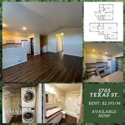 This spacious 3 bedroom, 2 bath home is duplex is ready for you to call home! This home features vinyl flooring throughout the living spaces, with carpet in the bedrooms. Two bedrooms and one bath are located on the first floor, entry level of the home. The third bedroom and second bath are on the second floor. The main living space is an open floor plan with the kitchen opening up into the large living space. The kitchen is complete with plenty of cabinet space and a large pantry. Upstairs has vaulted ceilings and large windows, allowing the sunshine to pour in. The front-loading washer and dryer are located on the second floor.