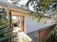 This charming one-bedroom, one-bathroom garage apartment offers approximately six hundred sixty square feet of peaceful living space nestled among the trees. Located above a private garage, it features wood floors, central heating and air conditioning, and a spacious deck that wraps around three sides of the home, perfect for enjoying the outdoors.