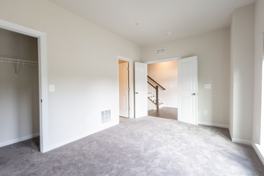 On the third level, you’ll find two carpeted bedrooms with ample closet space. The primary bedroom includes its own full bathroom, while another full bathroom is located in the hallway.