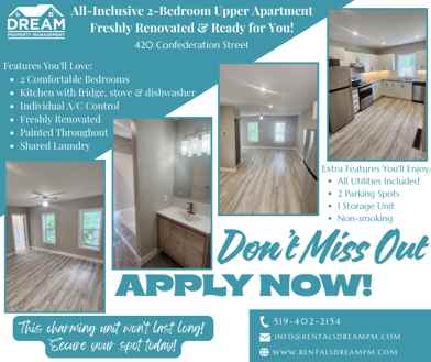 All-Inclusive 2-Bedroom Upper Apartment – Freshly Renovated & Ready for You!