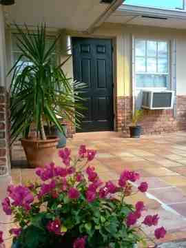 Spacious rooms and full kitchen and newer bathroom. Freshly painted has 2 ceiling fans and a large air conditioner. Has both & Front and back door which leads to a private patio. Electric,Water & sewer and yard maintenance included for just $55/ month small dog ok with $180 PET fee quick application approval with verified employment and credit. One person occupancy. First, last and security. Available now. Please call for showings.