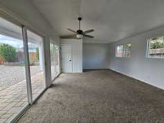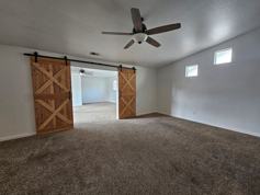 Stylishly updated 3-bedroom, 2.5 bath home offering 1,656 sq feet of comfortable living space and a finished 2-car garage. The kitchen features butcher-block countertops, all-new cabinetry, stainless steel appliances, an upgraded sink, modern hardware, and contemporary lighting. Central A/C to keep you cool all summer long. Both bathrooms have been fully renovated. The second bathroom features a tub/shower combo, while the primary suite offers a spacious walk-in shower. The entire home features durable luxury vinyl plank flooring with carpet in the bedrooms. Barn doors separate the family room, offering a flexible space ideal for a home office, den, playroom, or optional fourth bedroom. Modern ceiling fans and updated lighting fixtures have been installed throughout. Enjoy outdoor living on the covered patio, perfect for summer BBQs. A large backyard shed provides ample storage, and the front yard has been zeroscaped for low-maintenance. The washer, dryer, and refrigerator are included with rent. Dog on approval. Sorry, no cats! Call Charles Kitchen for more information and an application (775) 882-2513.