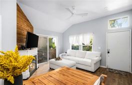 This beautiful, spacious 1-bedroom upper level condo is nicely upgraded with light wood laminate flooring throughout. The kitchen opens to the living room area, and has tile counter tops, and a breakfast bar. All rooms have high ceilings plus custom lighting. The bedroom is very spacious with vaulted ceiling, along with a ceiling fan and lighting. The large private balcony is accessible from either the bedroom or the living room, and offers extra an extra storage closet. The bathroom has been nicely upgraded with granite vanity. There is a convenient in-unit stack able washer and dryer. The one car garage is located near by and also plenty of open parking is located throughout the complex. Association amenities include a large pool and spa plus views of the tranquil bubbling stream with plenty of tropical landscaping. The condo is a short distance to beaches, freeway and shopping.