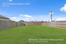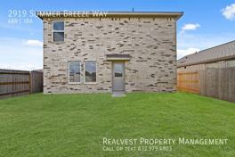2919 Summer Breeze Way is a 4 bedroom, 2 bathrooms apartment for rent. It is located in Angleton. It has apartment amenities including walk-in closets, assigned parking, on-site laundry, in-unit laundry, dishwasher, outdoor space, microwave, and air conditioning. Cats and dogs are allowed, making it a pet-friendly apartment.