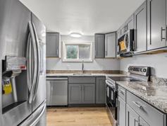 Both sides fully renovated and updated. A spacious three bedroom two bathroom apartment with an attached one car garage. Perfect for a family with plenty of space for the kids to play outside. Stainless steel appliances, washer/dryer hookups. Water & Sewer included, tenant pays for electric, heat, and hot water.