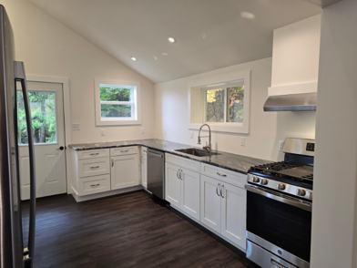Modern kitchen with granite countertops and soft-close cabinetry