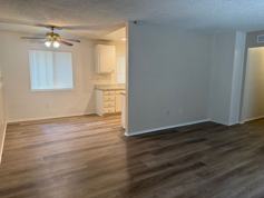 The open-concept design highlights an oversized living room that seamlessly flows into the dining room and connects to a galley-style kitchen equipped with a four-burner gas stove and plenty of counter space. The living room also has a wall air conditioning unit to keep you cool during the summer months. Down the hallway, you will find a spacious quest bathroom with a shower/tub combo. Just outside the guest bathroom, there is a wall of storage cabinets and a hall closet for your convenience. Each of the two bedrooms includes deep closets with overhead storage. This condo provides a washer and dryer area for tenant use. This unit also features a one-car detached garage with a storage closet, as ...