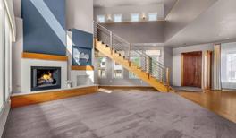 Step inside and enjoy an open, bright floorplan with upgraded lighting, hardwood and stained concrete floors, and a great room anchored by a gas fireplace. The kitchen is a chef’s delight — granite countertops, center island with breakfast bar, stainless hood, 5-burner cooktop, modern cabinetry, and a large apron-front sink.