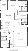 As you step inside, you'll find a spacious guest bedroom and full bathroom to your left ideal for visitors or multi-generational living. Continue into the heart of the home where the kitchen opens to the dining and living areas, making it perfect for entertaining. The kitchen boasts stainless steel appliances, a large center island, ample cabinetry, and stylish laminate wood plank flooring throughout all main areas, bathrooms, and hallways.