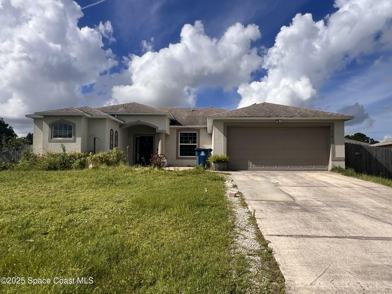 Don't miss the opportunity to rent this spacious and freshly painted 3 bedroom 2 bath home in South East Palm Bay. Features include brand new vinyl plank flooring, high ceilings, french doors to main suite, upgraded kitchen appliances, solar water heater, and a fully fenced yard filled with fruit trees. Make your appointment today!