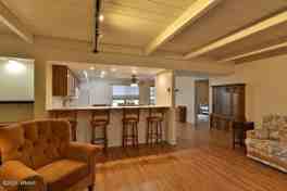 Great lower level condo with three bedroom, two baths, 1,575 square feet Condo with updated tile bath/shower surrounds, granite countertops, laminate flooring in Great room, carpet in bedrooms. There's a wood fireplace and dry bar in living room with wood beams and rough-sewn tongue & groove. Atrium doors open to a oversized patio off living room. Excellent location in Sports Village IV