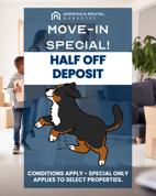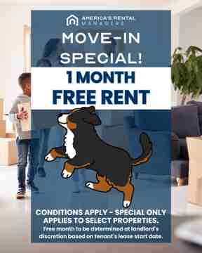 Sign a 13 month lease lease by 12/31/25 to receive ONE FREE MONTH over the initial term of the lease AND HALF OFF DEPOSIT!! Lease for a DISCOUNTED RENTAL RATE of $1,500/Month for the first 13 months (Market Rental Rate = $1,625/Month)!!! Conditions apply - discount to be applied beginning in the first full month of the lease term (January 2026) through the lease end of the initial term, and full prorated rent based on the market rental rate ($1,625) is due for December 2025.