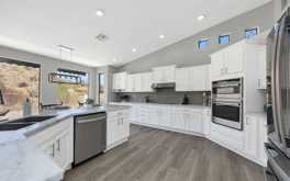 A rare blend of elegance, comfort, and location -- desirable 1-story Durango backing to natural desert is a must see! Fully remodeled 2BR + Den, 2.5BA home w/ 3 Car Garage w/ mini-split on very quiet perimeter street w/ stunning mountain & picturesque hillside views. Spacious great room flows into chef's kitchen featuring stainless appliances, gorgeous quartz counters, and large island overlooking family room with glass-flame fireplace. Den/flex space fits full-size office furniture. New flooring and custom pleated blinds throughout. Enjoy multiple outdoor living areas: walled paver patio in front and full extension covered back patio with electronic screens to completely enclose patio for pet-safe outdoor space & extended raised paver patio with sweeping views. Backs to state land/green space.