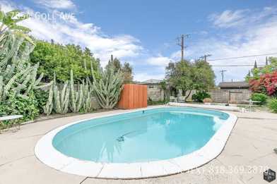 And the backyard? Massive. With a pool. Not a plunge pool, not a “technically counts as water” pool. An actual in-ground pool, ringed by cacti and citrus, that makes you wonder why you’d ever leave home. Invite friends, throw a floatie in, and congratulations: you’re suddenly the summer host.