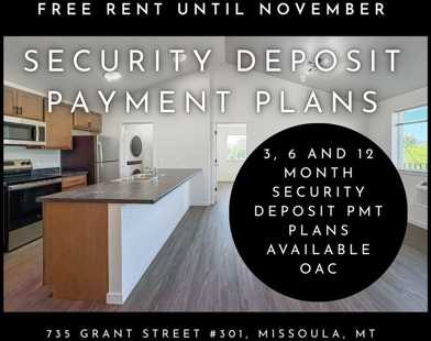 Rent Smart Property Management is proud to be the first PM in Missoula offering the renter community a reduced barrier of entry in securing your next home. We have partnered up with a 3rd party vendor who offers 3, 6, 9 or 12 month payment plans on your security deposit. Secure your new home with a fraction of the move in fees! Upon application approval and acceptance of our lease terms, you will be sent a link to qualify for your payment terms. * Payments are made online directly to the vendor who will hold your deposit through the term of your lease and refund your balance due after you vacate in accordance with the MRLTA.