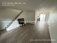 A single-car garage provides washer/dryer hookups, and a $100 flat fee covers water, sewer, and garbage. Enjoy easy access to Hwy 217, shopping, and local amenities.