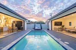Designed by award-winning Ranch Mine Architects, this one of a kind rental blends modern luxury with historic charm in the heart of Downtown Phoenix. Featuring vaulted ceilings, custom cabinetry, and 25 ft collapsible doors that open to a stunning indoor/outdoor living space, every detail has been thoughtfully curated for comfort and style. The main home offers a chef's kitchen, spacious living areas, and three beautifully appointed bedrooms, while the guest house includes its own lounge, wet bar, daybed, and a 75'' TV visible from the pool. Outside, enjoy a heated pool with Baja shelf, lounge areas, and a dining table for eight! Walk to top restaurants, bars, and coffee shops, or hop on the nearby light rail for easy access across the city!