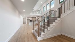 Home office with French doors frames entry. Open floor concept features a dining area with 19-foot ceiling just off the kitchen and family room. Island kitchen with built-in seating space and a corner walk-in pantry. Spacious family room with 19-foot ceiling, wood mantel fireplace and a wall of windows. Secluded primary suite offers a front yard view. Primary bath features dual vanities, linen closet, garden tub, separate glass enclosed shower and a large walk-in closet. Second level boasts a large game room and secondary bedrooms including a guest suite with a full bathroom, walk-in closet and access to a linen closet. Utility room and mud room just off the rear two-car garage. Covered backyard patio.