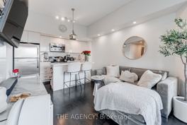 Welcome to Unit 815 at 2212 Lake Shore Blvd W a bright corner unit showcasing serene lake views and unobstructed city skyline vistas. This move-in ready suite has been extensively upgraded, featuring a modernized kitchen and bathroom with a custom quartz countertop island, matching counters and backsplash, new vanity, and sleek contemporary pot lighting. The living space is enhanced with custom roller shades, while the bedroom includes additional custom closet cabinetry for smart storage and style. With 9-foot floor-to-ceiling windows, a spacious open-concept layout, and a private balcony, the home is filled with natural light and designed for both comfort and entertaining. The unit comes with parking and a locker, this residence sits in a vibrant waterfront community, just steps from scenic trails, transit, grocery stores, drugstore, liquor store, cafes, and more.