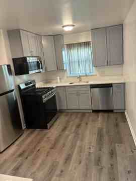 Step inside and be captivated by the newly refinished hardwood floors that stretch throughout the entire home, creating an elegant and timeless ambiance. The ample closet space ensures you have plenty of room for all your belongings, while the updated lighting adds a modern touch to every corner. The kitchen is a true highlight, boasting new 42" cabinets, quartz countertops, and brand new stainless steel appliances including a microwave hood, self-cleaning oven, dishwasher, and refrigerator. The eat-in kitchen is perfect for enjoying meals with loved ones or entertaining guests.