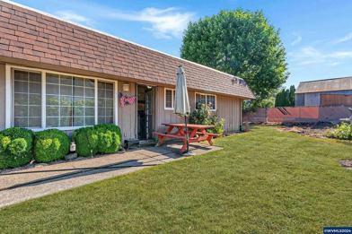 NEWLY UPDATED and available now is this single level duplex in NE Salem near. Fresh paint and newer flooring throughout. Entry welcomes you into the living room with a dining nook and access to the kitchen. Down the hallway is the half bath with stacked washer/dryer, two bedroom and a full bathroom.