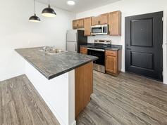 This beautiful apartment features luxury vinyl plank flooring, stainless steel appliances, air conditioning, washer and dryer, and storage units. Upper level units have covered balconies and vaulted ceilings. Lower floors have 9 foot ceilings for great reflection of natural light.