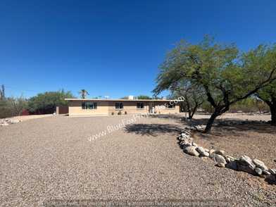 Pet FriendlyWelcome to this beautiful 4-bedroom, 3-bathroom home situated on a spacious half-acre lot! With ample parking and an incredible backyard complete with a pool. Step inside to a cozy entry hall that leads into a generous living room. The kitchen is fully equipped with a stove, built-in microwave, refrigerator, dishwasher, pantry closet, and abundant cabinet space, with a cozy dining area just steps away. The laundry room includes washer and dryer hook-ups. The primary bedroom features its own private bathroom with a stylish barn door, a shower/tub combo, and a unique bar area. One of the secondary bedrooms also includes an en-suite bathroom with a standing shower. Step outside to your own backyard oasis! Enjoy the large, covered patio and refreshing pool, perfect for relaxing or entertaining. (Please note: the lot behind the block wall is not for tenant use. The faux thatch on the back patio's palm decor as-is). Don’t miss out on this fantastic opportunity!