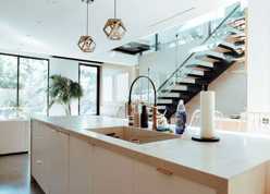 The 2nd level features a spectacular glass loft overlooking the first floor, a family room, fireplace, laundry area and 2 additional bedrooms with private bathrooms. The 3rd level is an exceptional Master fit for a king. Wake up to views of the sun rising over the city with 2 walk in closets, a spa-like bathroom with a steam, a secret speak easy and beverage center, and cedar ceiling that carries out to cantilever over the deck with views. Walk up to the roof deck and enjoy 360 degree views from the snow peaked mountains in Big Bear to the blue waters and parachutes of the fun seeking beach lovers a block away. Enjoy the Jacuzzi tub, have a bbq, and have drinks around the fire pit under the stars.