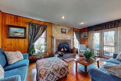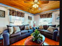 Unfurnished House- This is 3 bedroom (all located on the 2nd floor). There is a full basement for storage and a washer and dryer. There is a screen in farmers porch, back deck, front yard, large, private backyard. On the first floor is a very large eat in kitchen with plenty of storage, den, wood burning fireplace in the living room and 1/2 bath. The 2nd floor has a master bedroom with a dressing room and there are 2 other bedrooms that will hold a queen size bed, and there is a full bathroom with separate shower and jetted tub. All rooms have ceiling fans.