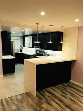 Turnkey 2BR/3BA townhouse-style condo offering 1,456 sq ft of updated living space in a desirable Van Nuys location. Features include direct garage access, open floor plan, recessed lighting, crown molding, and laminate flooring throughout. The remodeled kitchen includes quartz countertops, stainless steel appliances, custom cabinetry, and a breakfast bar with pendant lighting. All bathrooms have been upgraded with designer finishes, including a spacious primary bath with soaking tub and glass-enclosed shower. Both bedrooms offer walk-in closets. Additional highlights: cozy fireplace, private balcony, in-unit laundry, new central A/C & heat, and a large private storage unit. Located in a well-maintained complex with guest parking and convenient access to shopping, dining, and major freeways.