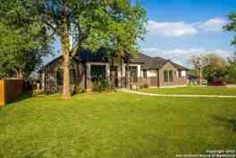 Experience luxury living in this nearly new single-story home, nestled within the highly desirable gated community of Woodbridge Farms in La Vernia, TX. Offering 4 bedrooms and 2.5 baths, this home showcases an open-concept design highlighted by soaring 14-foot ceilings in the living room and kitchen, creating an inviting and sophisticated atmosphere. The chefs kitchen is outfitted with stainless steel Whirlpool appliances, including a built-in cooktop with pot filler, built-in oven, microwave, and dishwasher. The versatile oversized 4th bedroom can serve as a game room or media space, while a private office provides the ideal setting for remote work or quiet study. Retreat to the spacious primary suite, complete with a spa-inspired bathroom featuring a freestanding tub, expansive walk-in shower with rainhead and body sprayers, and an impressive 27-foot custom closet. Step outside to a covered back porch, perfect for entertaining or relaxing. Additional highlights include a 3-car garage, double vanities in the guest bath, full irrigation with professional landscaping, and a generous .25-acre corner lot with a side-entry garage