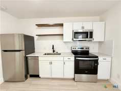 Receive FREE RENT-Owner offering a rental rebate with a 12-18 month lease agreement! Be the first to occupy this fully renovated one bedroom, one bath second story rental near popular downtown New Braunfels. This fully upgraded multi-family unit is ready for move in! Beautiful Castlewood oak laminate flooring throughout. Kitchen features gorgeous granite countertops & white ceramic subway tile backsplash. Upgraded kitchen faucet and hardware on cabinets & drawers, espresso floating shelves for extra storage. Kitchen complete with brand new stainless appliances including Fridge, Microwave, Range & Dishwasher. This residence offers one full bath with a stylish tile stand up shower featuring a luxury shower head. Generous Walk-in closet in bedroom with window for natural light. Central heat & AC. Fresh sod installed on site. Washer & dryer access onsite. Garage parking & Covered parking available for an additional monthly fee, while supplies last. Each unit has its own electric meter. Water is $50/month in addition to rent. Renters insurance required. Don't miss this opportunity! Reach out today to schedule a tour and claim your move-in rebate!