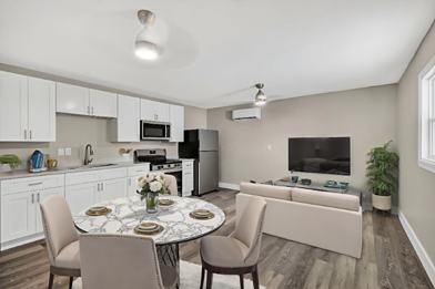 Be the first to enjoy this beautifully renovated apartment featuring brand-new appliances, a fully updated kitchen, and your own in-unit washer and dryer. The kitchen comes fully furnished, making it easy to settle in right away.
