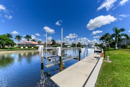 Discover a rare opportunity to lease this stunning 3-bedroom, 2-bath waterfront pool home, perfectly positioned in the sought-after community of Burnt Store Isles. Designed with both elegance and functionality in mind, this residence offers direct sailboat access and features an extended concrete dock with a boat lift—an ideal haven for boating enthusiasts. Inside, the home welcomes you with expansive open living spaces adorned with porcelain tile throughout. The thoughtfully updated kitchen is the heart of the home, featuring quartz countertops, rich wood cabinetry, stainless steel appliances, a glass-tile backsplash, pendant lighting over the breakfast bar, and a spacious pantry. Whether preparing intimate dinners or entertaining guests, this culinary space was designed to inspire. The home’s layout offers versatility with a formal living room, a cozy den, and a large family room that seamlessly flows to the outdoor living areas. Multiple rooms, including the master suite, open directly onto the lanai, creating a harmonious connection between indoor comfort and outdoor beauty. From nearly every vantage point, you’ll enjoy serene views of the sparkling pool and tranquil canal waters. The primary suite is a retreat unto itself, complete with dual walk-in closets featuring custom shelving and a spa-like bath with dual quartz vanities, a walk-in tiled shower, and a private water closet. Step outside to your private oasis where a heated saltwater pool shimmers beneath a panoramic-view screen enclosure. The lanai, designed for year-round enjoyment, includes motorized privacy screens, an outdoor shower, and ample space for lounging or entertaining. Practical upgrades include storm-rated front doors, PGT impact-resistant windows and sliding glass doors, a resurfaced pool with new deck pavers, and a well-appointed garage with storage cabinetry, overhead racks, and a mini-split A/C system. This home blends modern luxury, thoughtful design, and the beauty of waterfront living. Schedule your private tour today and experience Burnt Store Isles at its finest.