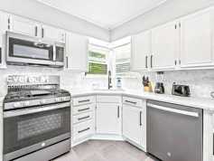 Discover the convenience and functionality of this home 3 bedroom home. This property offers a range of practical amenities designed for comfortable living, including tile and wood plank floors that are both stylish and easy to maintain. In the kitchen, you'll find stainless steel appliances such as a gas range, microwave, refrigerator, and dishwasher that simplify meal preparation. For your convenience, a washer/dryer combo and garbage disposal, making daily tasks straightforward and efficient.