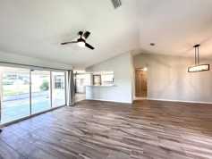 "ANNUAL RENTAL" Welcome to your new home in the highly desirable Deep Creek neighborhood of Punta Gorda! This spacious and beautifully maintained residence offers comfort, privacy, and convenience—perfect for families seeking Florida living at its best. Open Concept Living with cathedral ceilings and an airy split floor plan create a bright, inviting atmosphere. The beautiful kitchen features a double convection oven, built-in storage with dual pantries, coffee bar, and breakfast nook. Primary Suite Retreat is large ensuite with dual sinks, walk-in closet, and private lanai access. Three pocket sliders and French doors open to a screened lanai overlooking a serene greenbelt—ideal for morning coffee or evening relaxation. Living room is designed for a full-wall entertainment center with space for an oversized TV and display space. Other amenities include inside laundry room, 2-car garage, and ample storage throughout. This lovely home is nestled in Deep Creek, a deed-restricted community known for its well-kept homes and peaceful environment. Easy access to I-75, making commutes to Sarasota, Fort Myers, and local beaches a breeze. Close to shopping, dining, golf courses, and top-rated schools.