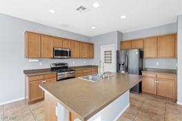 Stunning 4-bedroom home boasts a range of high-end features that promise a life of comfort. Community includes Community Pool & Hottub, Gym, Basketball Court and BBQ Area. Step inside to find tile & laminate wood flooring underfoot, leading you through the open-concept kitchen and family room. The kitchen is a chef's dream, equipped with stainless steel appliances, a spacious island, a large walk-in pantry, and ample cabinetry. The primary bathroom, completely renovated within the last year, offers a touch of modern luxury. The home also includes a washer/dryer, ceiling fans throughout, and a storage closet under the stairs for added convenience.Outside, a pavered, fenced-in backyard awaits, perfect for outdoor entertaining. With granite countertops and other high-quality finishes throughout, this home is a testament to style and functionality. Don't miss out on this gem in the heart of Las Vegas! As an ADDED PERK,Trash, Sewer & Solar are already Included in Rent! Dogs under 20 lbs only.