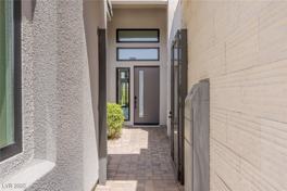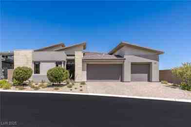 Stunning Single-Story in Guard-Gated Mesa Ridge Summerlin! This Elevated Corner lot of 3,229 Sq Ft Bridge Model blends sleek Mid-Century Modern design with luxury finishes—featuring 3 beds, 3 full baths & 2 half baths and a detached casita/office. Soaring 16’ ceilings and a 24’ multi-slide door highlight the open-concept great room. Gourmet kitchen boasts upgraded quartz counters, WOLF 6-burner cooktop with griddle, 48” built-in JENN-AIR fridge, and butler’s pantry. Luxe primary suite offers a private loggia with fireplace, spa-style bath with freestanding tub, dual showers, and custom closets. Over $300K in upgrades: Automated roller shades, Epoxy-coated garage flooring, Soft water and RO filtration systems, Custom outdoor kitchen with BBQ island, Lush fruits trees, California Closets for smart, stylish storage. Mesa Ridge offers exclusive resort-style living with clubhouse, fitness center, pool, and trails—minutes from top-tier dining, shopping, and schools in Summerlin.