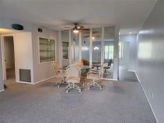 Welcome home to this 2nd-floor deluxe model unit! Step into a spacious living and dining area with brand-new carpet, built-in shelving, and a ceiling fan. The kitchen features stainless steel appliances and ample cabinet space—perfect for everyday cooking and entertaining. The primary bedroom includes a wall of closets, direct access to a versatile bonus room with laminate flooring, and a private en suite bath with walk-in shower. The second bedroom is generously sized with a built-in closet and ceiling fan, and the second full bath is conveniently located nearby. Enjoy brand-new hurricane-rated windows for added peace of mind, and the ease of a full-size washer and dryer right in your unit. Nestled in the vibrant On Top of the World community, offering a relaxed lifestyle with great amenities including Clubhouse, Dog Park, Fitness Center, Pool, Tennis Court. Rent includes: Cable TV, Grounds Care, Internet, Sewer, Trash Collection, Water