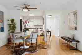 Welcome to this charming garden-level corner unit featuring 1 bedroom, 1 bathroom, and approximately 734 square feet of thoughtfully designed living space with beautiful wood flooring throughout. Its one of the few units in the building offering direct access to a shared patio, providing a unique indoor-outdoor living experience.